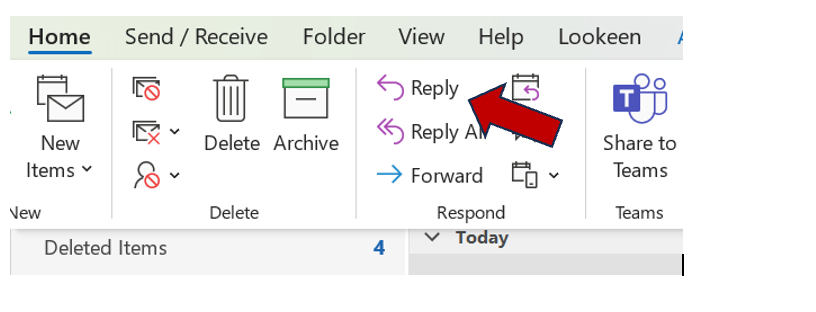 Step 4: Select the “Reply” button on the “Home” tab or toolbar.